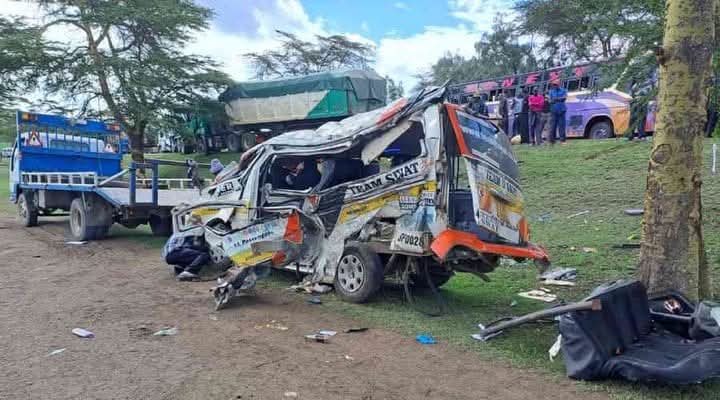 The family of Elijah Mburu from Kahiga Village had hired a PSV matatu to attend a function in Rongai, Nakuru County, on Sunday. However, the journey ended tragically when the matatu collided head-on with a speeding truck at Kariandusi near Kikopey, Gilgil Sub-County.