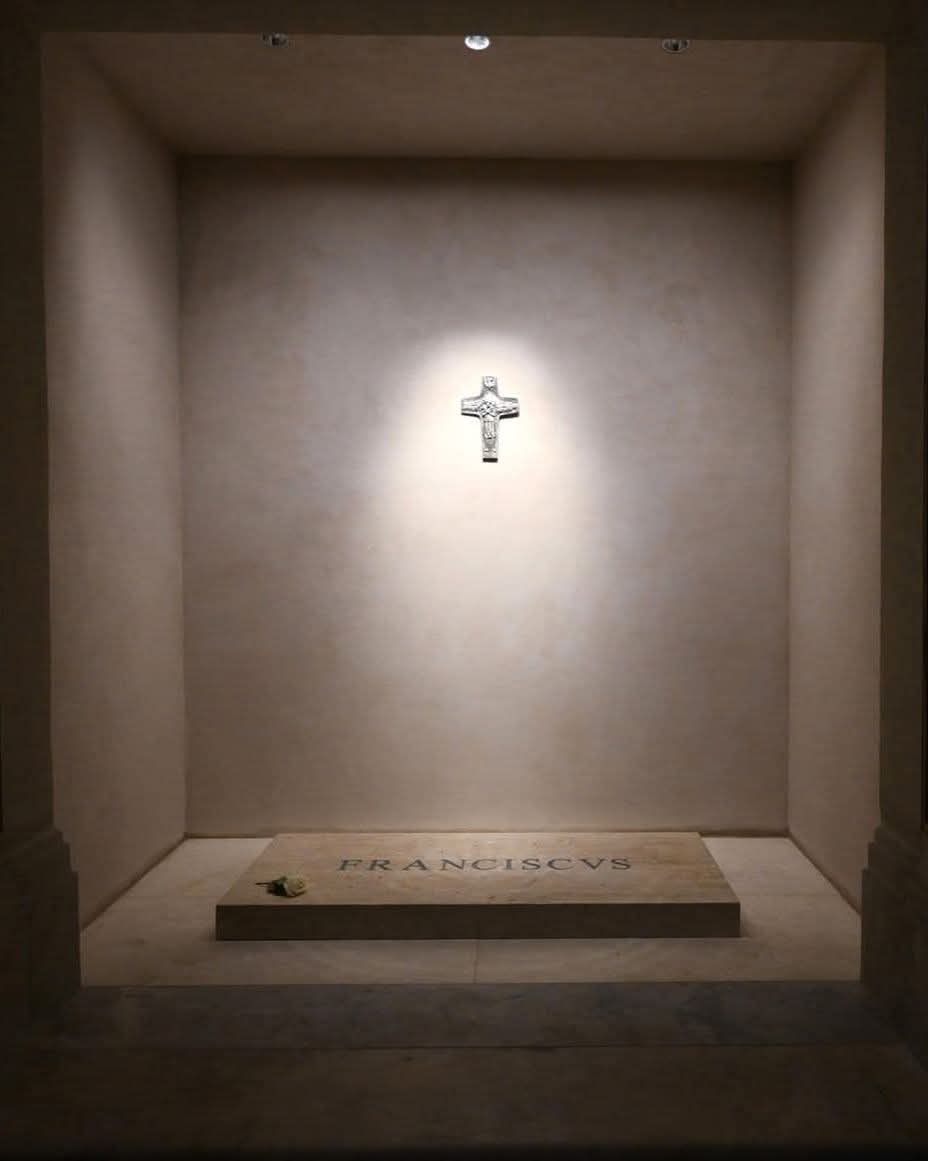 The Pope’s coffin was placed in the side aisle of the Basilica, between the revered Pauline Chapel — home to the cherished icon of Our Lady ‘Salus Populi Romani’ — and the Sforza Chapel. This location reflects his lifelong devotion to Our Lady and his close ties to the Roman faithful.