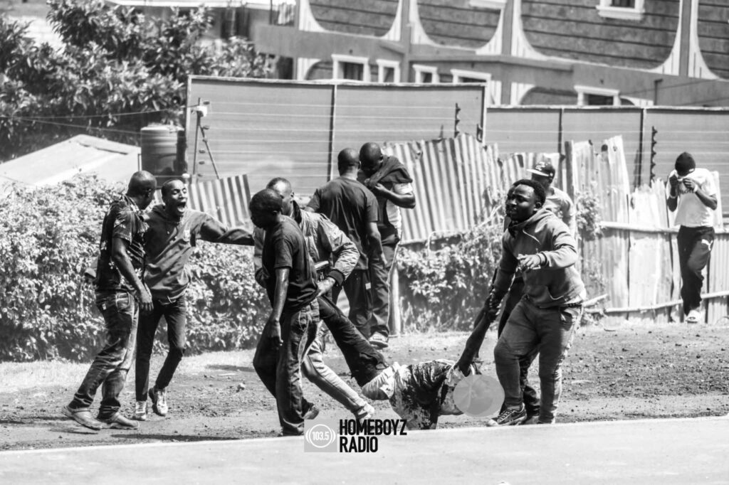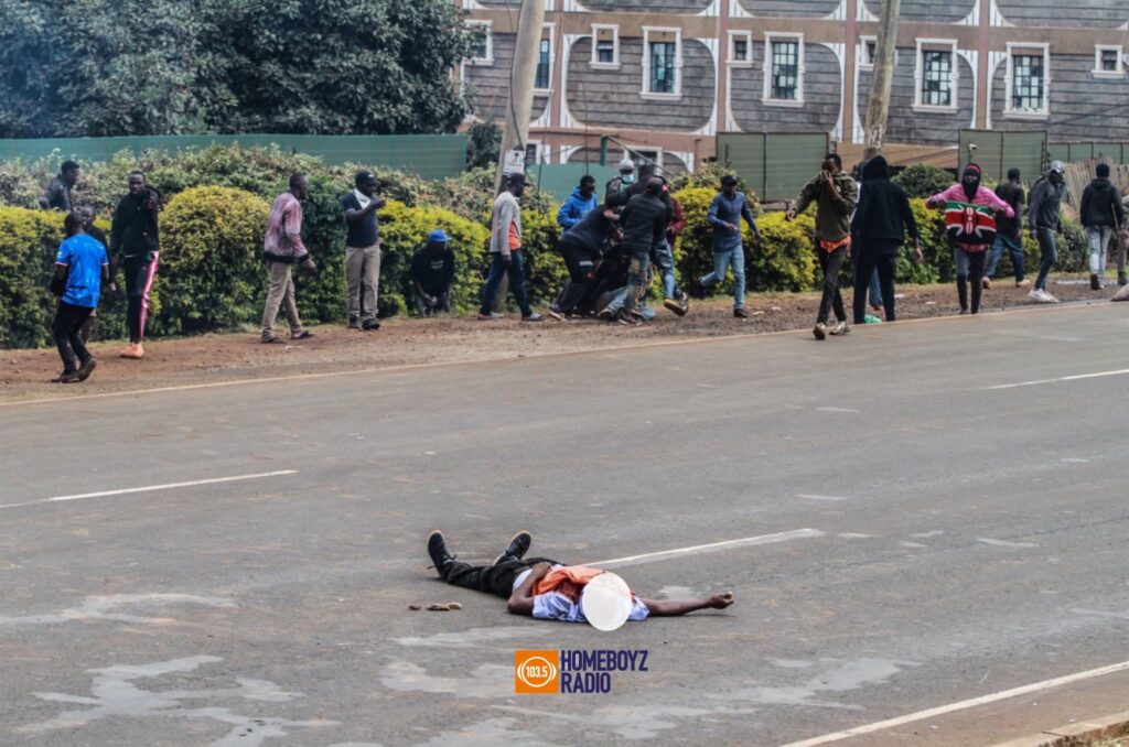 In Kangemi, Nairobi, chaos erupted earlier today when police clashed with protesters attempting to block roads and light bonfires. In the ensuing confrontation, an unidentified man was reportedly shot by police and is feared dead. Witnesses say the man was unarmed and was caught in the chaos while trying to flee. Police have yet to issue an official statement on the incident.