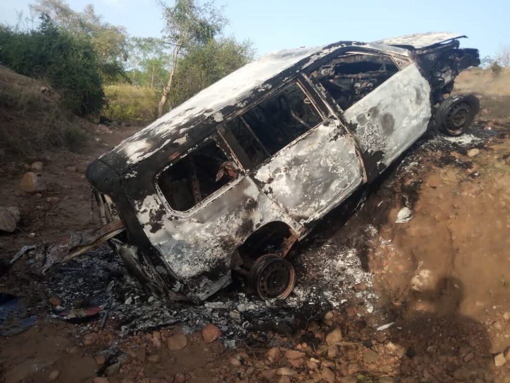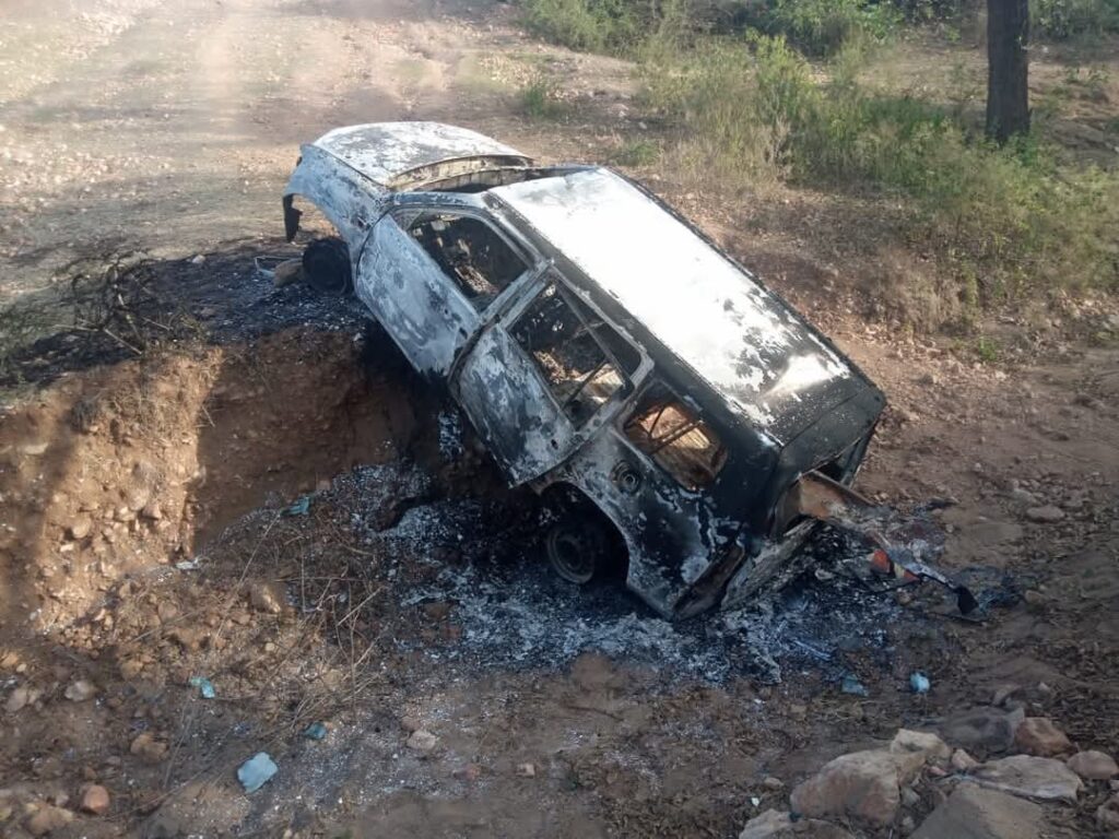 In a dramatic twist, the mob set the suspects’ Probox ablaze, reducing it to a smoldering shell in a fiery display of fury. The situation could have turned even more tragic had the police not arrived promptly to rescue the battered men.