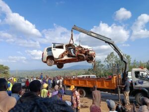 A deadly evening crash at Kaseve Corners has left two people dead and several others injured after a high-speed collision between a private Probox and a 14-seater matatu. The horror accident, which occurred in the early evening hours, has sent shockwaves across Machakos County. Eyewitnesses say both vehicles were moving at dangerously high speeds before … Continue reading Tragedy at Kaseve Corners: Two Dead in Grisly Road Crash